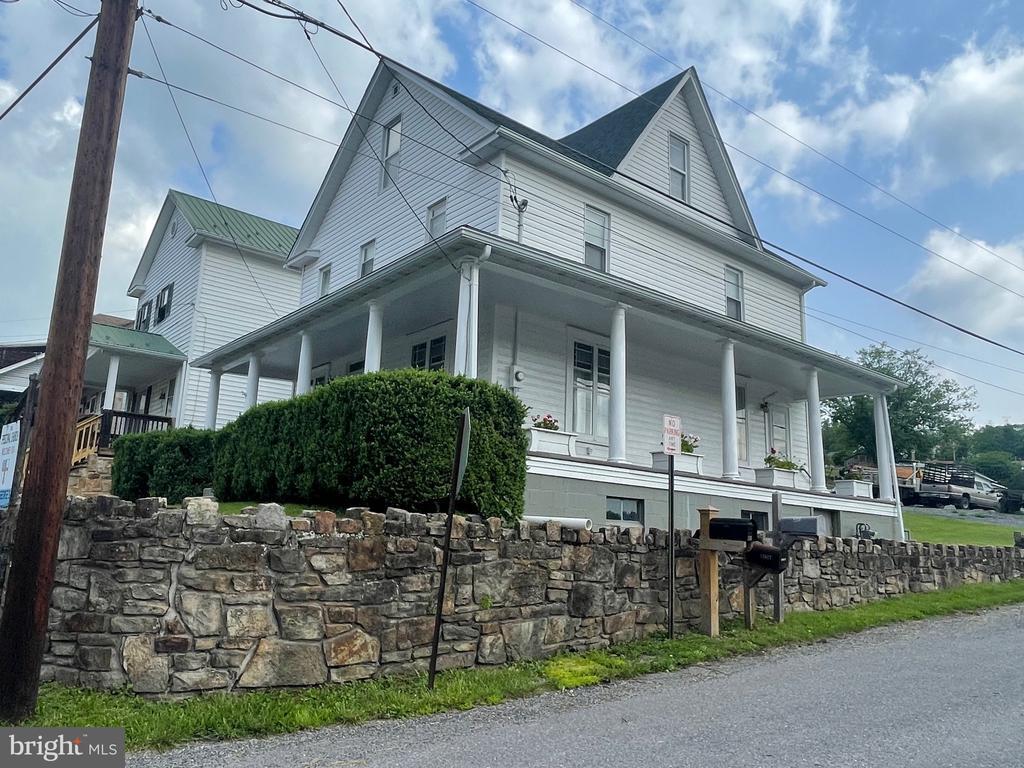 Imagine enjoying a cup of cold brew on the grand, wrap around porch, while watching the Western Maryland Steam Engine roll along the mountainside, all from your new well maintained home in the heart of Mount Savage. The main level features large living and dining spaces with high ceilings, kitchen with dishwasher and a well laid out laundry room and half bath. Stroll up the beautiful staircase to 4 bedrooms and a full bath. Don't forget to look all around for all the special character offered in this home, from original wooden stair rails to stained glass and even your own speakeasy in the basement! On street parking for now but yard offers plenty of room for a parking pad. Roof is 3 years old. Come see how much this home has been loved and cared for through the years!!!