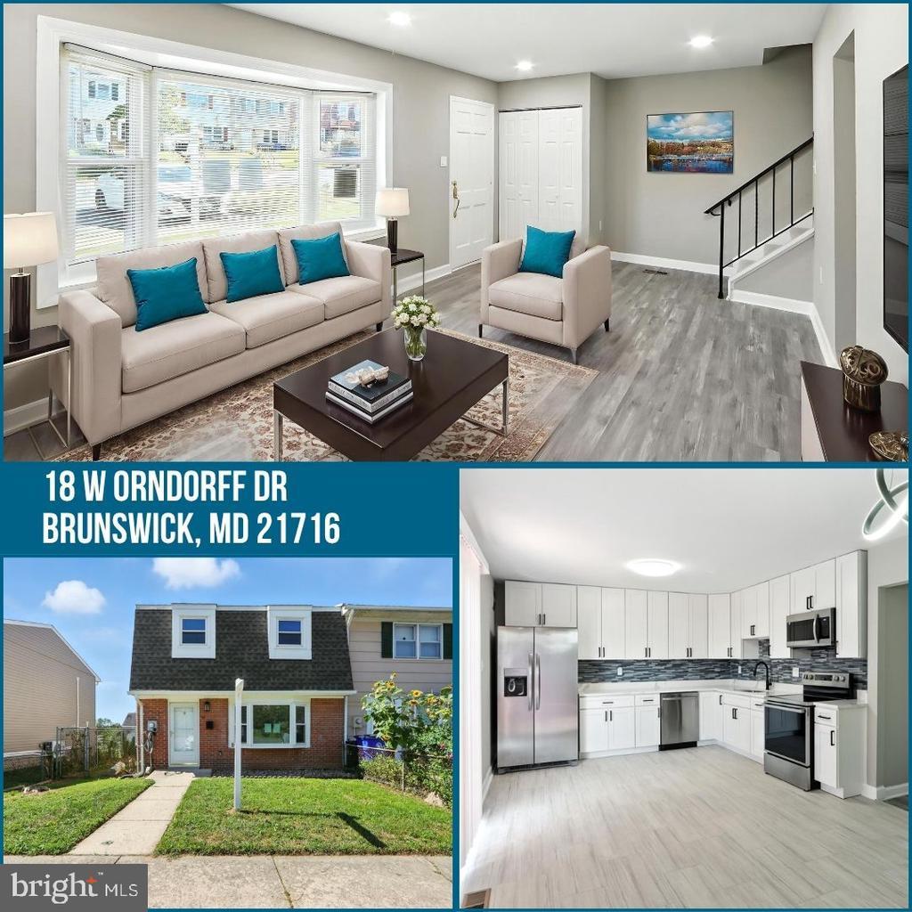 End-unit townhome in Brunswick Heights—now available! This beautifully renovated 4-bedroom, 2-bath home is move-in ready and full of upgrades. The brand-new kitchen features stainless steel appliances, quartz countertops, and new cabinetry, while the adjoining dining area creates the perfect spot for family meals or entertaining. Enjoy all-new flooring throughout, including luxury vinyl plank, plush carpet, and ceramic tile. Both full bathrooms are fully tiled with stylish custom accents. Additional updates include central HVAC, replacement windows, and an architectural shingled roof for peace of mind. The fully finished lower level offers a spacious family room and a utility room. Step outside to a large deck and fenced backyard overlooking open green space—ideal for relaxing or hosting gatherings. Located near playgrounds, schools, the C&O Canal, and charming downtown Historic Brunswick, this home combines modern updates with a convenient setting. Don’t wait—schedule your tour today!