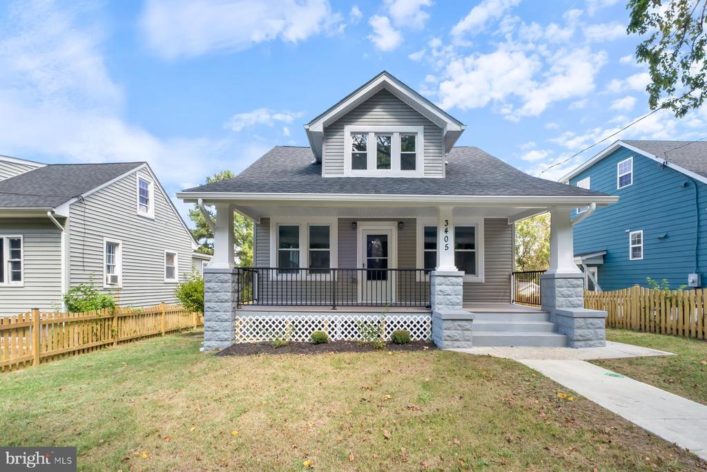 Sold As-Is! Newly remodeled 4BR/4BA Craftsman style home located on a pristine lot in the desirable neighborhood of Mount Rainier. Make your way to the spacious covered front porch featuring a beadboard ceiling and trex decking and open the door into your forever home. Step inside a home filled with natural light, luxury flooring, recessed lighting, and an open main floor plan. The main living space offers a large living room, dining room and stunning kitchen. The kitchen boasts plenty of cabinets, stainless steel appliances, granite countertops with a complimenting tile backsplash, a deep stainless sink under a window, and a peninsula with pendant lights and breakfast seating. Tucked behind the kitchen is a sunroom with tons of light and access to an amazing yard space. In addition, on the main floor are two spacious bedrooms and a newly remodeled full bath. The second floor offers a primary sized secondary bedroom with a walk-in closet, a new full bath, and a large primary bedroom with a walk-in closet and private en suite offering a double sink vanity. The lower level is finished offering additional living space featuring a large family room, a full bath with a walk-in shower, a wet bar area, laundry, storage, and a walk-out to a covered patio in the yard. From the sunroom step outside to a newly constructed deck leading to a yard filled with green space, a large patio area, adult trees, and a detached one-car garage. This home is move-in ready with so much to offer new homeowners and is located in close proximity to shopping, restaurants, and commuter routes.