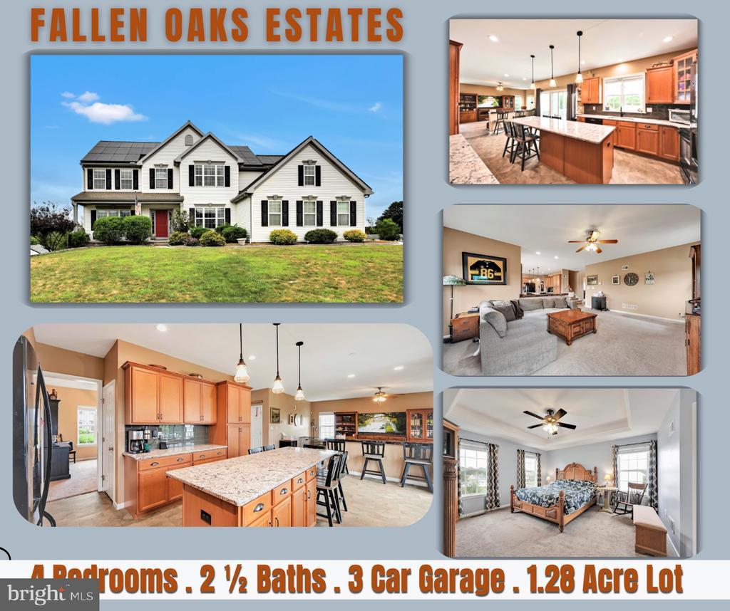 ***Elegant Garman-Built Home on 1.28 Acres in Fallen Oaks Estates*** Discover comfort, style, and space in this beautifully maintained 4-bedroom home situated on a partially fenced 1.28-acre lot in sought-after Fallen Oaks Estates. Built by Garman Builders, this property welcomes you with a two-story foyer and coat closet, setting the tone for the thoughtful design throughout. Step into the formal dining room, perfect for gatherings, and a bright family room that flows seamlessly into the upgraded kitchen—featuring quartz countertops, tiled backsplash, pantry with pull outs, generous island with breakfast bar overhang, and all appliances included. A newly added live edge wood top along the half wall in the living room adds rustic charm, drop zone/mud room along with a convenient powder room completes the main level. Upstairs, the primary suite boasts a tray ceiling, custom walk-in closet, and a spa-like bath with soaking tub with tile surround, double vanity, glass-enclosed shower, and private water closet. Three additional bedrooms, a second full bath, and a dedicated laundry room provide comfort and convenience. Enjoy the practicality of three side-entry garages, efficient geothermal heating and central air, and the potential of an unfinished walk-out basement with Superior Walls and 10-foot ceilings ( making this space ready for you to finish to your liking). Outdoor living is a breeze with a rear composite deck with steps, a lovely covered front porch, and ample yard space. ( the yard encompasses the land beyond the fenced in area. See the plot plan). This home blends quality craftsmanship with modern upgrades—ready for you to move in and enjoy.