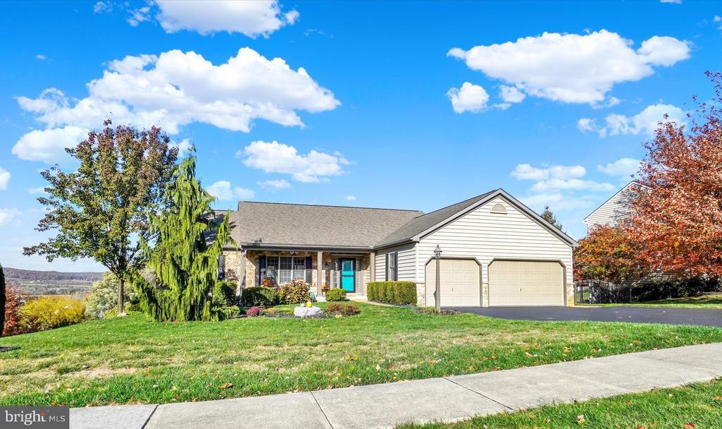 Imagine waking up every day to beautiful views in this stunning 3BR, 2.5BA rancher located in Orchard Hills Community, Central Schools. Perfectly situated just minutes from Rt30, I83, and all the shopping, dining, and conveniences you could need, this home offers the ideal combination of comfort, style, and convenience. Set among rolling hills with sidewalks, streetlights, and two community parks, the property boasts panoramic views from the deck, patio, and sun-filled rooms. Step inside to an open, airy floor plan featuring a spacious living room, with a corner gas fireplace, that flows effortlessly into the granite eat-in kitchen showcasing stainless steel appliances. The dining area leads to the deck and beautiful vistas beyond—a perfect spot to start your day. There is also a separate dining room for larger gatherings. The split-bedroom layout ensures privacy, with the primary suite on one side and two additional bedrooms, with a full bath on the other. The primary suite features a walk-in closet and a luxurious bath with a double bowl vanity, separate shower, and whirlpool tub. A practical 1st floor mud area and laundry room, are conveniently situated just off the entry foyer, with direct access to the garage, making coming and going, or handling daily chores, effortless. The mostly finished walk-out lower level boasts a generous, open flex space with abundant natural light and easy access to the backyard. It includes a gas woodstove, convenient half bath, and two unfinished storage rooms, providing ample space for organization, storage, and future customization. This level seamlessly extends the living area of the home, offering both functionality and the potential to suit a variety of needs. An oversized 3-car garage complemented by ample parking makes hosting gatherings and accommodating guests a breeze. With modern comforts, move-in readiness, and beautiful views, this home is ready to welcome you home! AGENTS - Please read Agent Remarks.